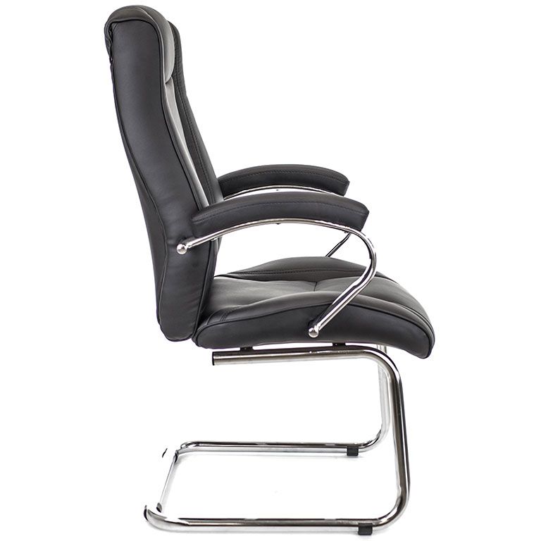 Модель выполнена на надежных хромированных полозьях, поэтому кресло стоит устойчиво и выглядит современно. Хромированные подлокотники добавляют комфорта при посадке и подчеркивают статусный внешний вид. King CF подойдет для ежедневного использования и хорошо сочетается с офисной мебелью разных форматов.