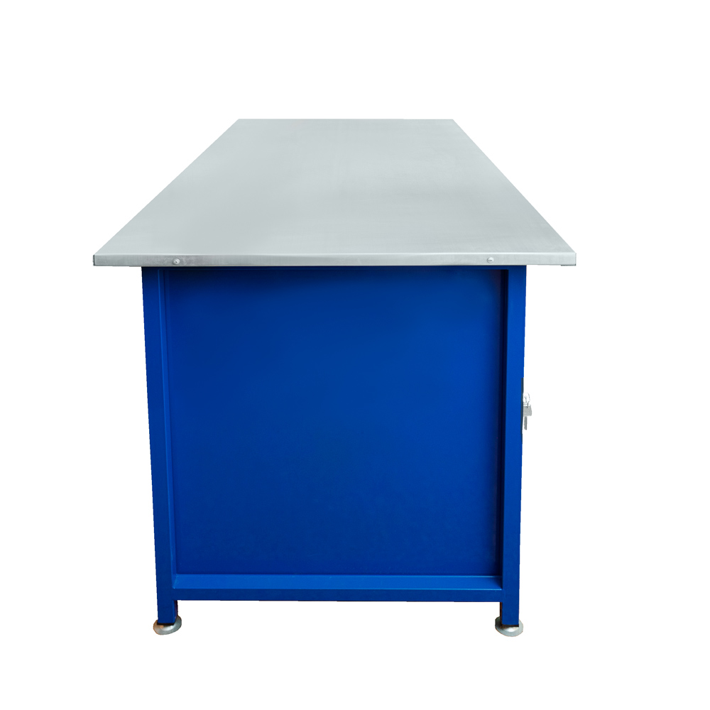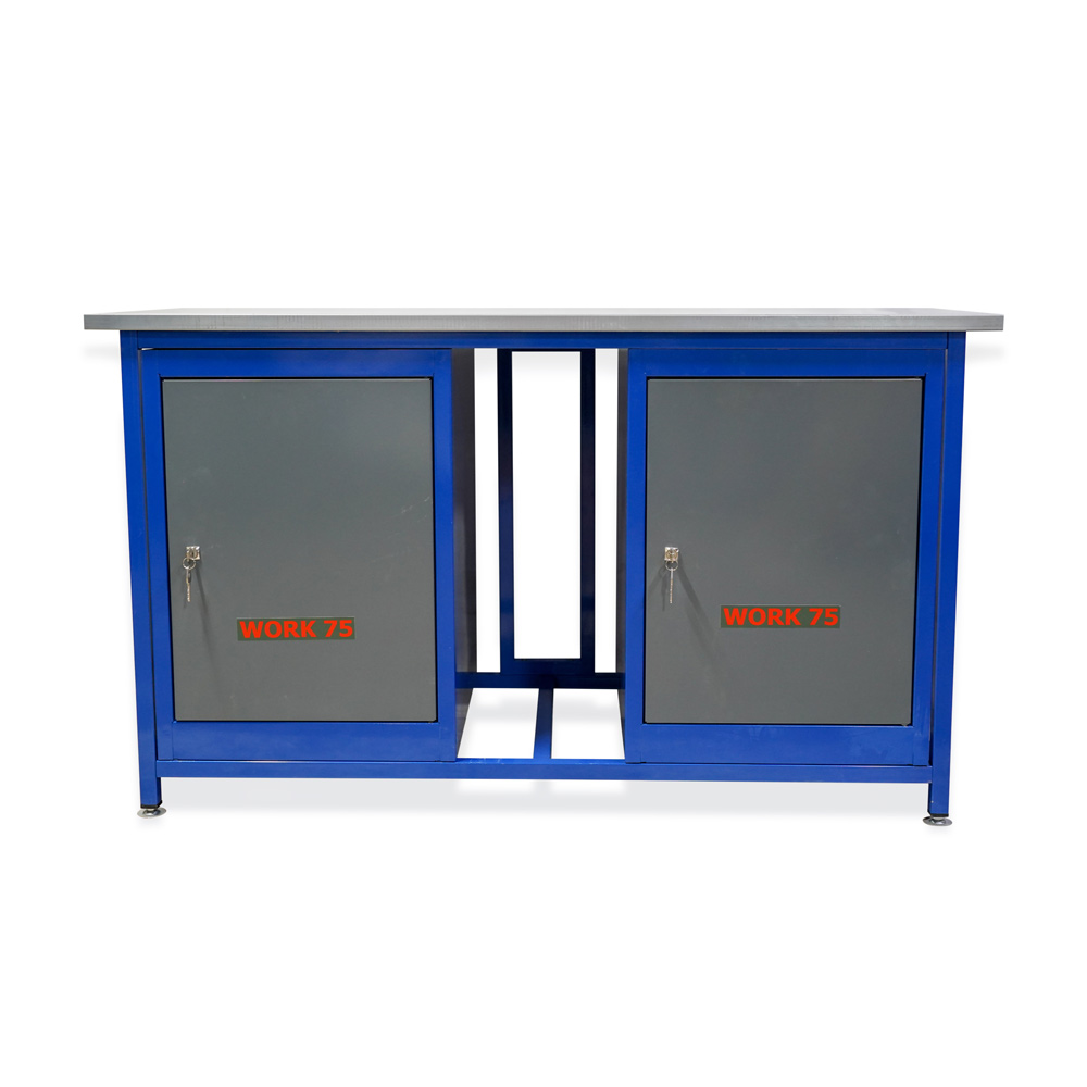 Главный рабочий элемент — столешница глубиной 750 мм. Внутри — фанера 24 мм, сверху — оцинкованный стальной лист толщиной 1,2 мм. Такая поверхность практична в быту и на производстве: меньше боится ударов, не капризничает при контакте с инструментом и проще отмывается после работы. Максимальная распределенная нагрузка на столешницу — до 350 кг, так что WK1500 уверенно справляется и с мелкими операциями, и с «тяжелой» сборкой.